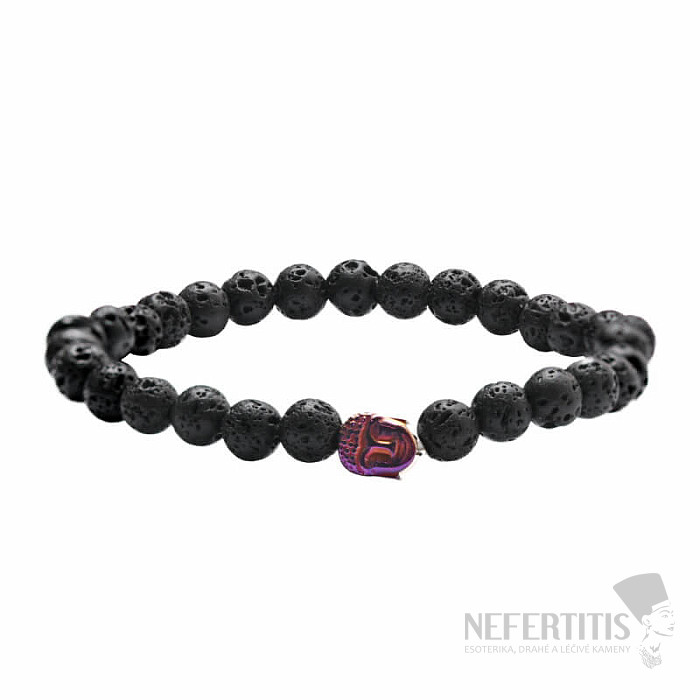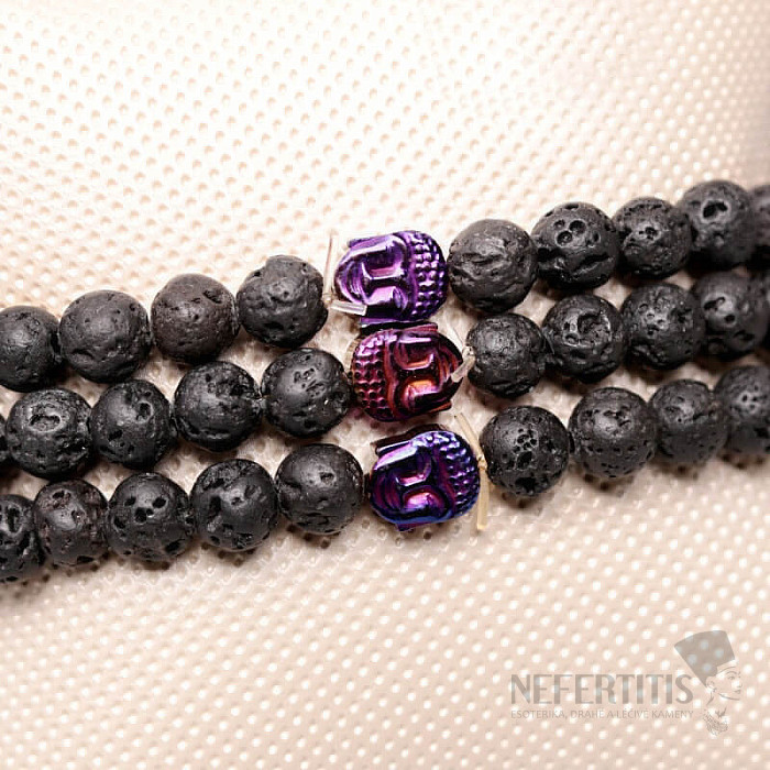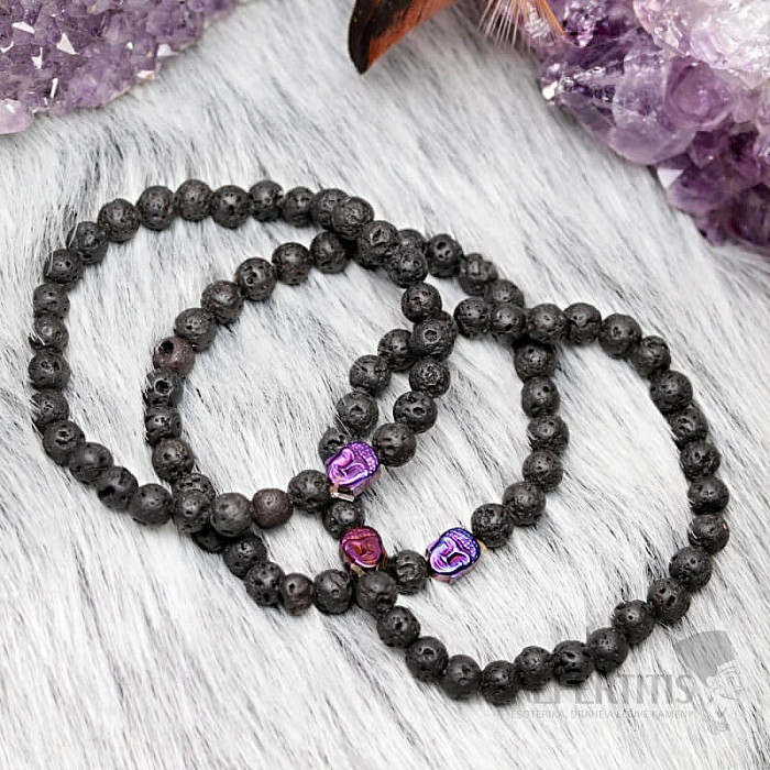 Ein attraktives buddhistisches Armband aus natürlichen Lavasteinperlen und einem violetten Buddhakopf aus Metall verleiht Körper und Seele Kraft, stärkt das Selbstvertrauen, reduziert Angst und Stress. Lavastein ist ein Element der Erde, daher verleiht er seinem Besitzer positive Energie, Optimismus und Lebensbalance. Lavasteine helfen, einen müden Geist zu entspannen und ein wunderbares Gefühl perfekter Harmonie und Einheit hervorzurufen. Das Armband enthält einen Buddha-Kopf aus unedlem Metall in goldener Farbe, so dass das Armband seinem Träger Fülle, Glück und ein erfülltes Leben bringt, wofür der Buddha ein Symbol ist. Die Perlen sind auf einem elastischen Nylonband in neutraler Farbe aufgezogen. Der Durchmesser der Perlen beträgt ca. 6,5 mm. Dieses Armband ist sowohl für Frauen als auch für Männer geeignet. Anschauliches Bild.