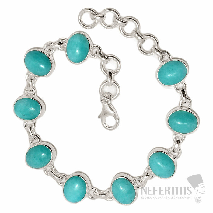 Ein Armband aus in Silber gefassten Amazoniten , das mit seinem grünblauen Farbton die Schönheit von natürlichem Türkis fast übertrifft. Beim Anblick dieses Armbandes werden Sie träumen und irgendwo ans Meer versetzt werden, in eine Bucht mit türkisblauem und grünem Wasser, gebadet in der Sonne eines Sommertages... Genau daran erinnert Sie dieses prächtige Armband mit seiner Farbe. Ag 925. Sie kaufen das abgebildete Schmuckstück.