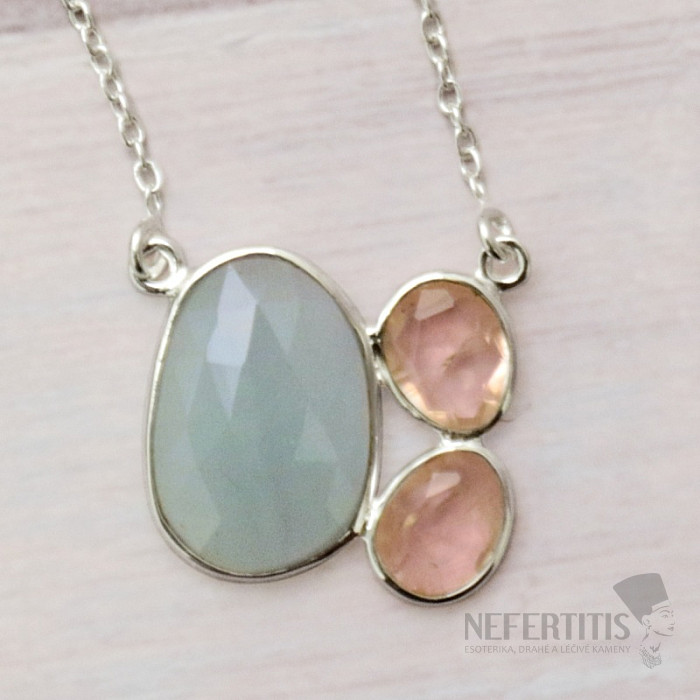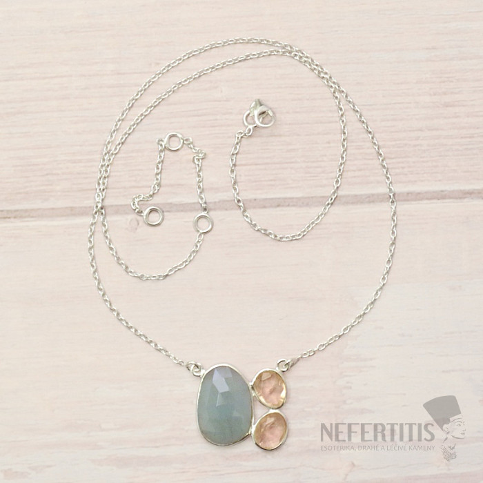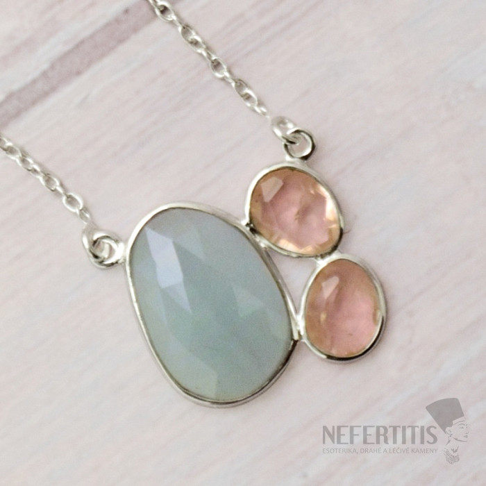 Eine außergewöhnliche Silberkette mit geschliffenem Aquamarin und Rosenquarz. Ein unverwechselbares Schmuckstück, das jeden verzaubert und an Ihnen niemand übersehen wird. Ag 925. Sie erwerben genau das abgebildete Schmuckstück.