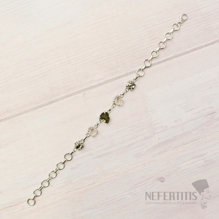 Armband aus Vltavín, Herkimer-Diamant und Campo del Cielo-Meteorit, Silber Ag 925, LOT32