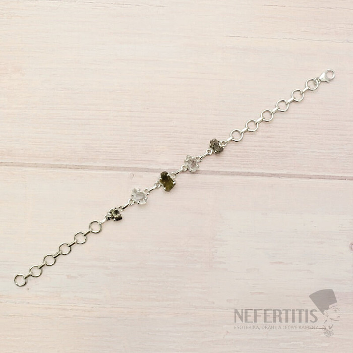Armband aus Vltavín, Herkimer-Diamant und Campo del Cielo-Meteorit, Silber Ag 925, LOT35