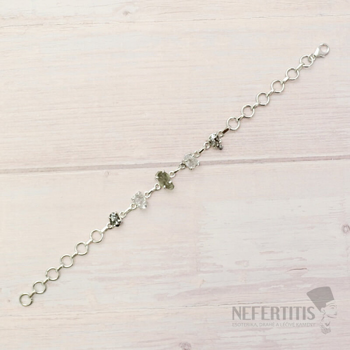 Armband aus Vltavín, Herkimer-Diamant und Campo del Cielo-Meteorit, Silber Ag 925, LOT36