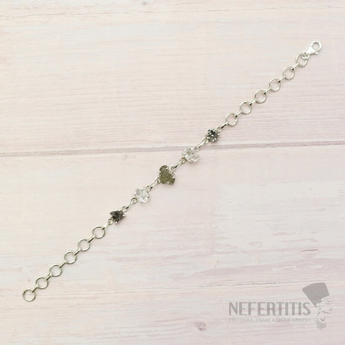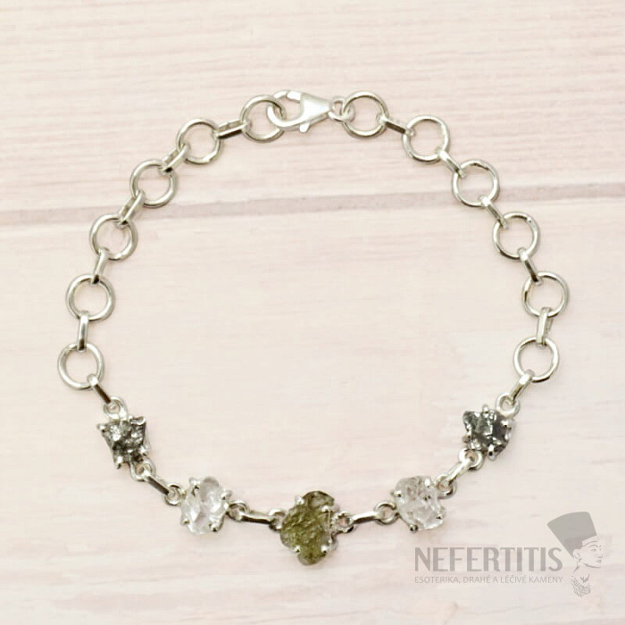 Armband aus Vltavín, Herkimer-Diamant und Campo del Cielo-Meteorit, Silber Ag 925, LOT37