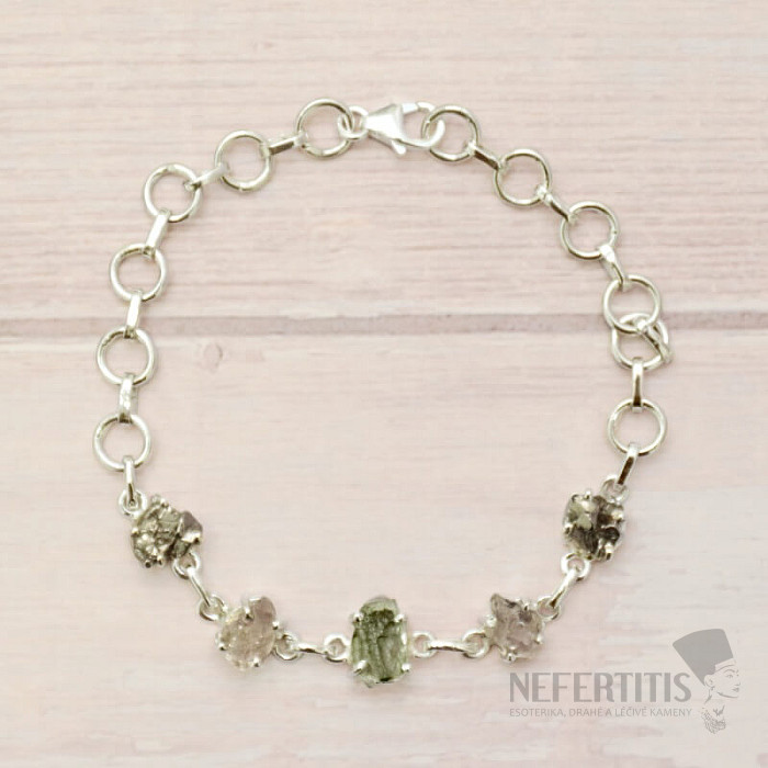 Attraktives Silberarmband mit Moldaviten, Herkimer-Diamanten und Campo del Cielo-Meteoriten. Ag 925. Sie erwerben das abgebildete Schmuckstück.