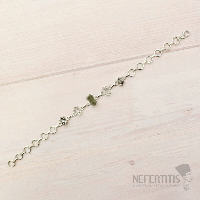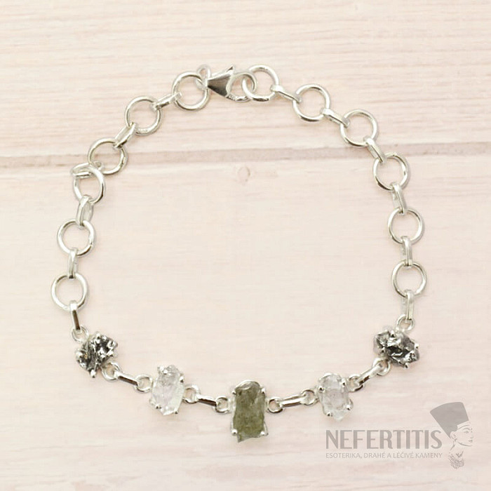 Armband aus Vltavín, Herkimer-Diamant und Campo del Cielo-Meteorit, Silber Ag 925, LOT40