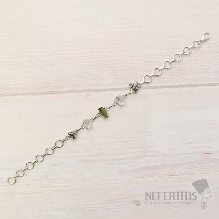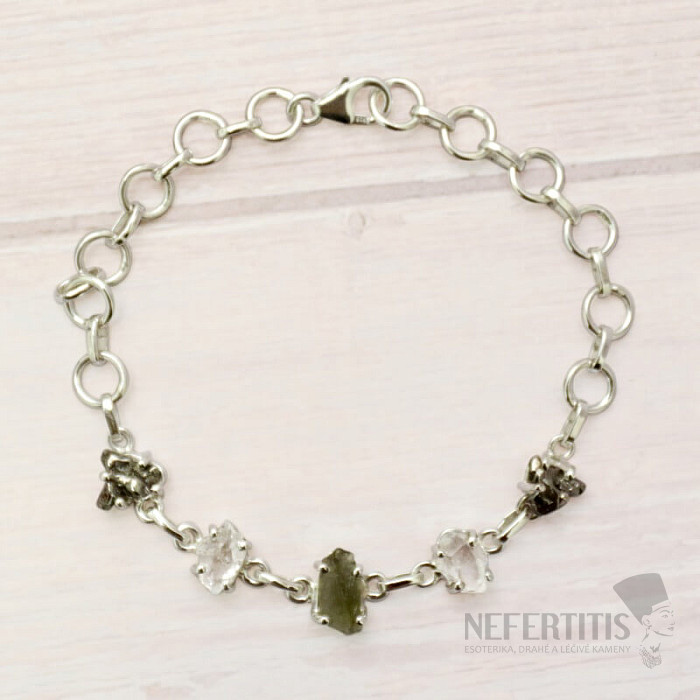 Armband aus Vltavín, Herkimer-Diamant und Campo del Cielo-Meteorit, Silber Ag 925, LOT41