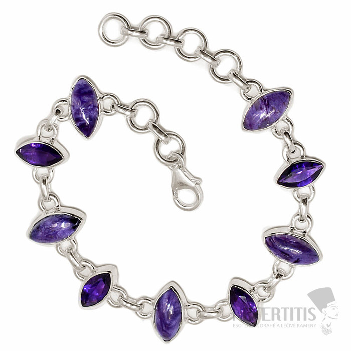 Silberarmband mit wunderschönen, hochwertigen Charms und geschliffenen Amethysten. Die wunderschön lilafarbenen Charms verzaubern Sie nicht nur durch ihren seidigen Glanz, sondern auch durch die Verwandlung der Zeichnung im wechselnden Licht. Ag 925. Sie erwerben direkt das abgebildete Schmuckstück.
