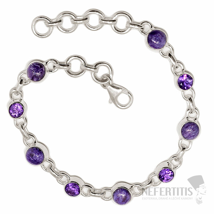 Silberarmband mit wunderschönen, hochwertigen Charms und geschliffenen Amethysten. Die wunderschön lilafarbenen Charms verzaubern Sie nicht nur durch ihren seidigen Glanz, sondern auch durch die Verwandlung der Zeichnung im wechselnden Licht. Ag 925. Sie erwerben direkt das abgebildete Schmuckstück.