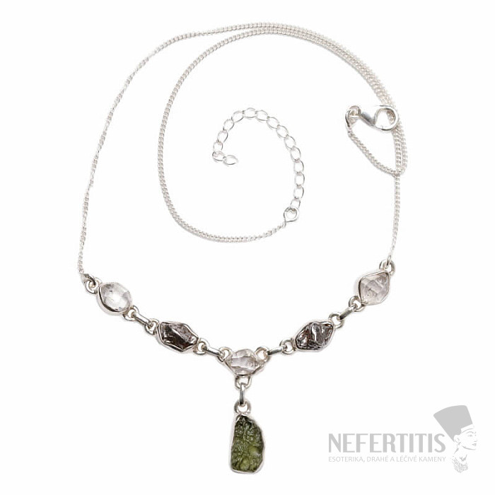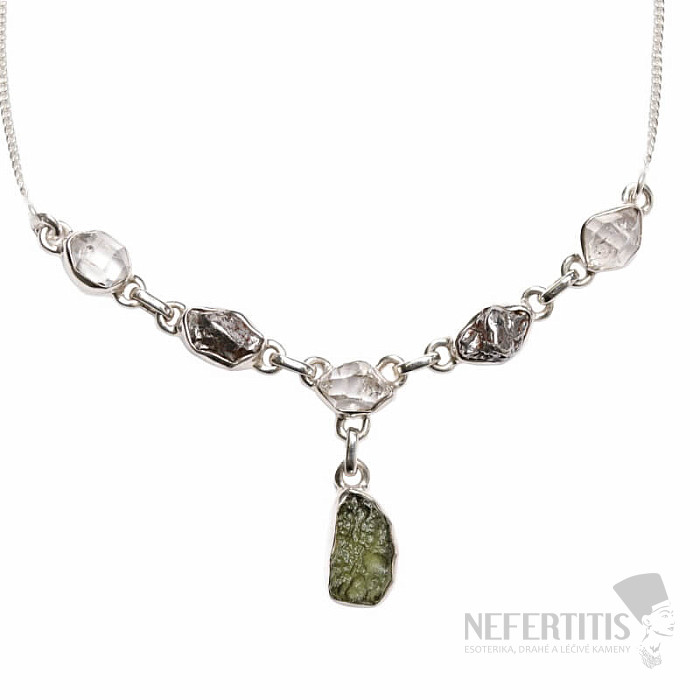 Halskette aus Moldavit, Herkimer-Diamanten und Meteoriten, Silber Ag 925 N67
