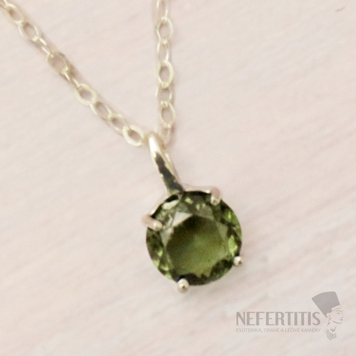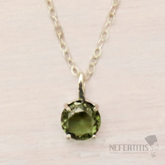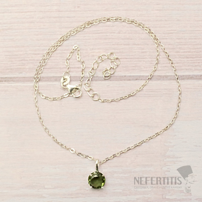 Attraktive Silberkette mit geschliffenem Moldavit. Ag 925. Sie erwerben das abgebildete Schmuckstück.