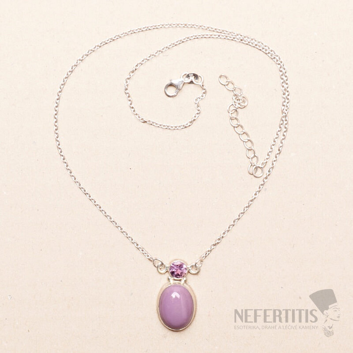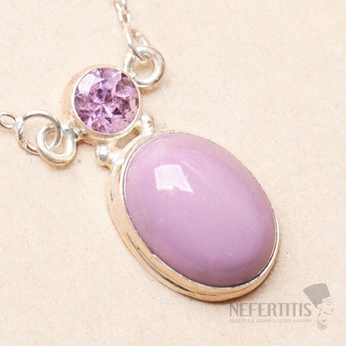 Eine schöne Silberkette mit Phosphosiderit und geschliffenem Amethyst. 925er Silber. Phosphosiderit ist ein Talisman, der den Wunsch unterstützt, einen Teil des Lebens in den gewünschten Zustand zu bringen. Lila ist die Farbe der Intuition, der Träume und des Luxus . Der wunderschön gefärbte Stein eignet sich als Schmuck für verschiedene Anlässe. Sie kaufen das abgebildete Schmuckstück.