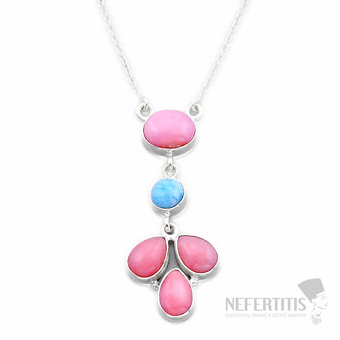 Zarte Silberkette mit rosa Opalen und Larimar. Ag 925. Rosa Opal ist ein Talisman der Liebe. Seine zarte rosa Farbe verleiht dem Schmuckstück seine Persönlichkeit. Sie kaufen das abgebildete Schmuckstück.
