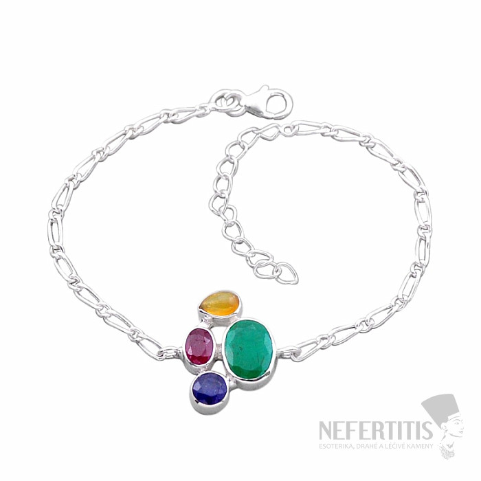 Silberarmband mit geschliffenem indischem Smaragd, Rubin, Saphir und einem Cabochon aus äthiopischem Opal. Silber 925. Sie erwerben das abgebildete Schmuckstück.