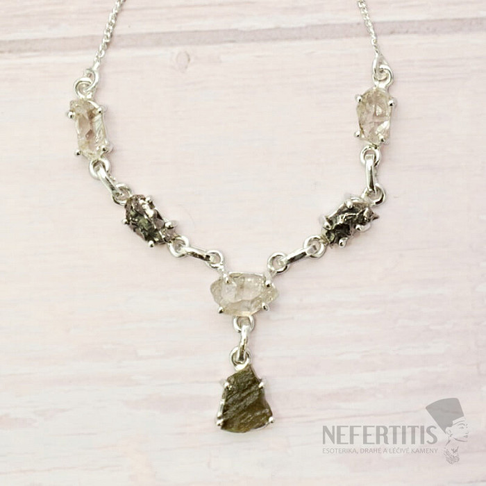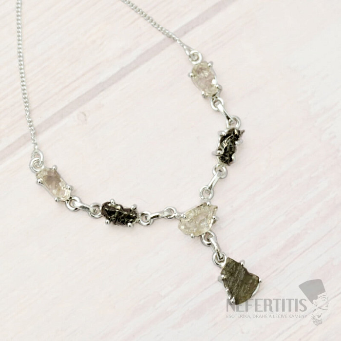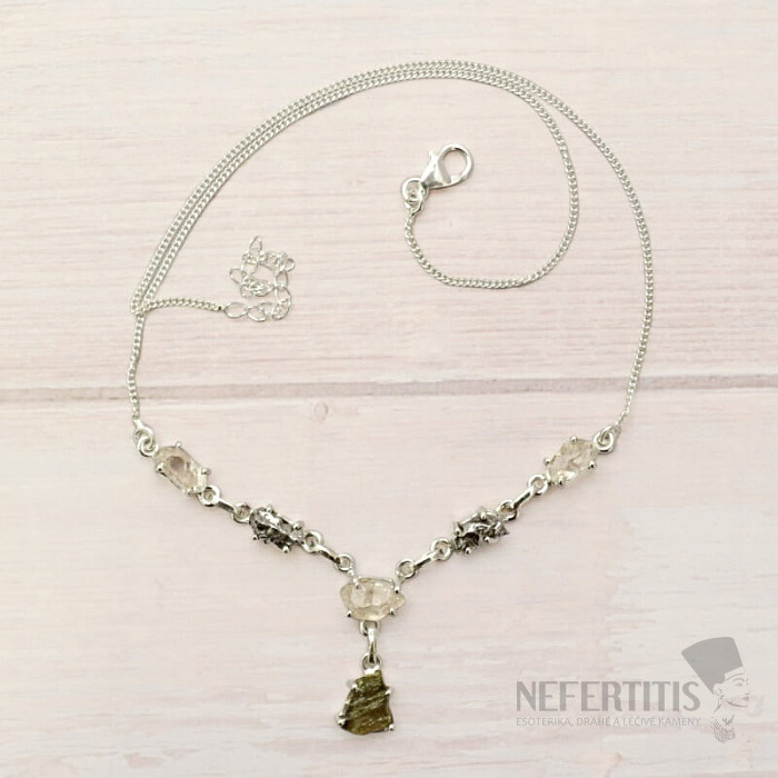 Vltavín, Herkimer-Diamant- und Meteoriten-Halskette, Silber Ag 925 LOT32