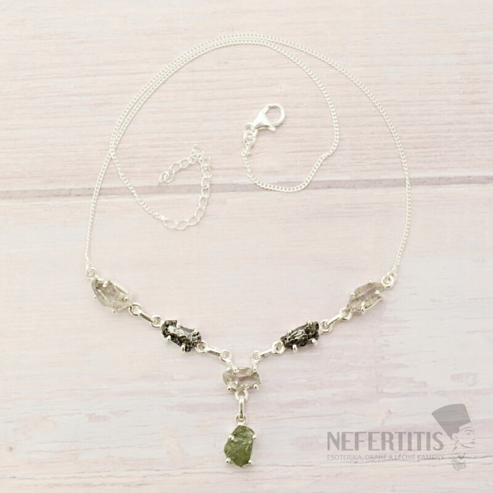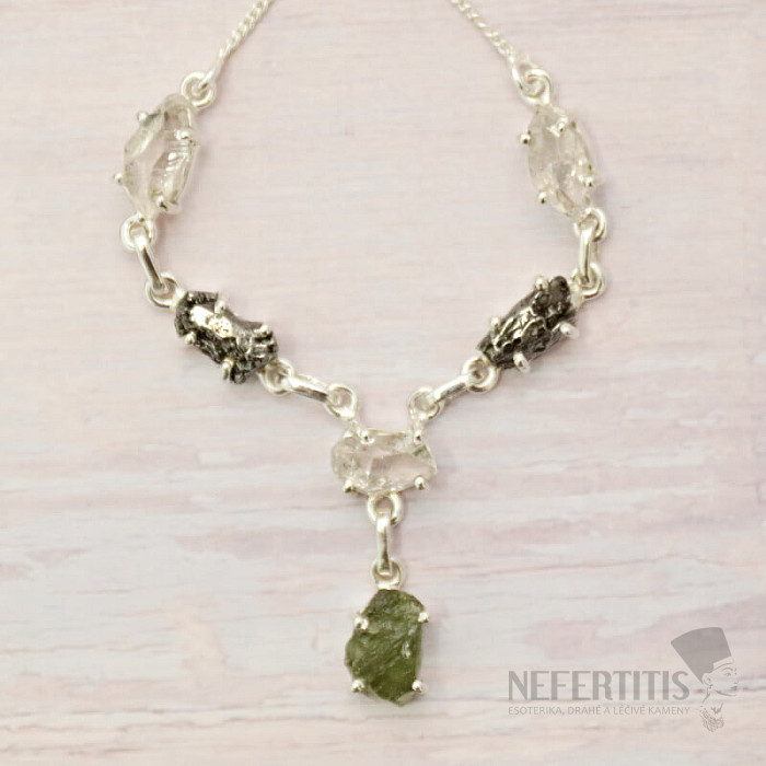 Vltavín, Herkimer-Diamant- und Meteoriten-Halskette, Silber Ag 925 LOT36