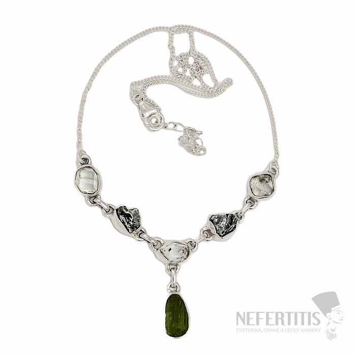Vltavín, Herkimer-Diamant- und Meteoriten-Halskette, Silber Ag 925 N44