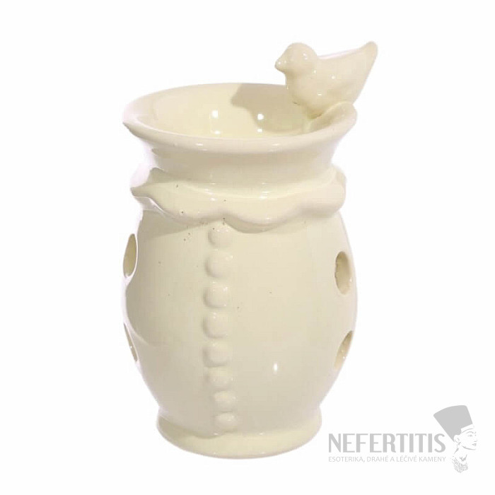 Keramik-Duftlampe, cremefarbener Vogel