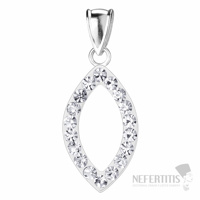 Das Design des Anhängers ist von der Marquiseform (einem länglichen Oval) inspiriert, die die Silhouette optisch streckt und einen sehr femininen und eleganten Eindruck vermittelt. Der Rand des Anhängers ist mit weißen, geschliffenen Kristallen besetzt, die das Licht wunderschön reflektieren und dem Schmuckstück einen zarten, luxuriösen Schimmer verleihen.