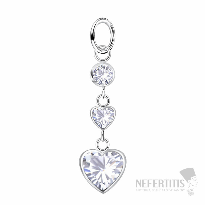 Dieser silberne Anhänger mit drei klaren Zirkonia (CZ) verkörpert Eleganz und romantische Zartheit. Zwei der Steine sind herzförmig geschliffen, während der dritte Zirkon im Rundschliff das harmonische Gesamtbild abrundet.