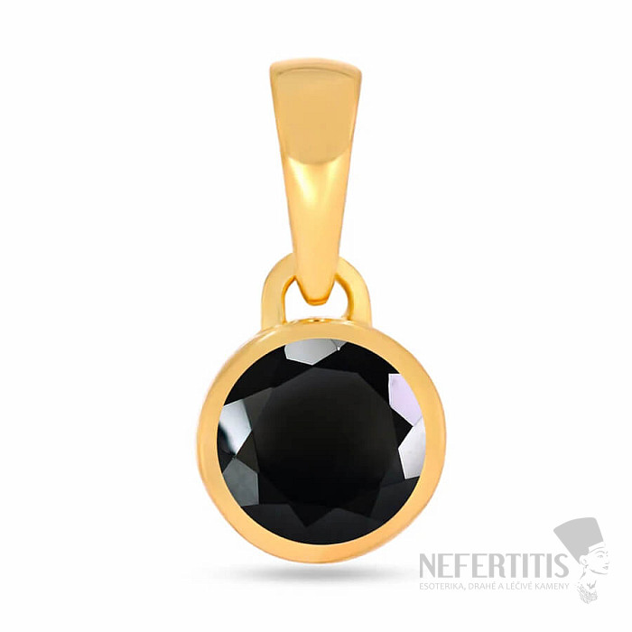 Silberner Anhänger, vergoldet und mit schwarzem Spinell, CB-P708G-BS