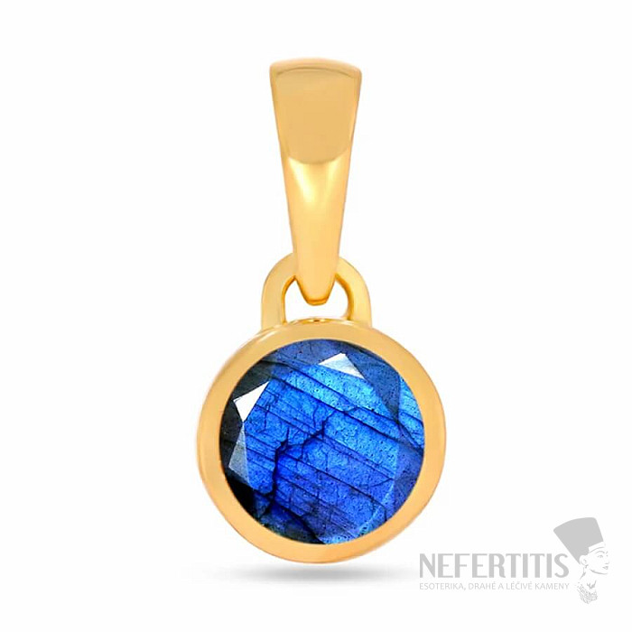 Dieser zarte , vergoldete Anhänger aus der Concetta-Kollektion ist aus 925er Sterlingsilber gefertigt und mit einer 14-karätigen Goldschicht überzogen, die ihm einen dauerhaft warmen und luxuriösen Farbton verleiht. Das dominierende Element ist ein natürlicher Labradorit von ca. 6 mm Größe, der in eine harmonische Rundform geschliffen und facettiert wurde, wodurch sein typischer blaugrauer Schimmer besonders gut zur Geltung kommt.