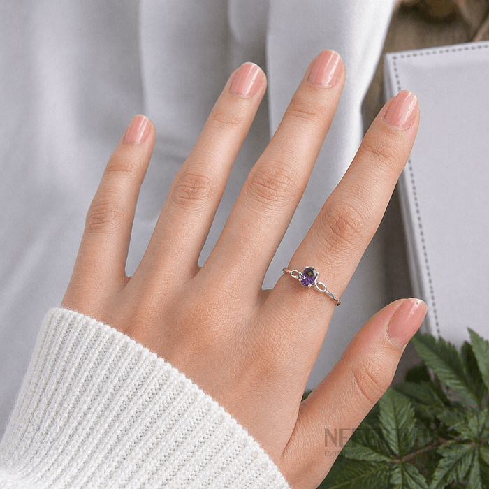 Dieser Silberring mit natürlichem Amethyst ist ein zartes und elegantes Schmuckstück, das jedem Outfit eine raffinierte und zeitlose Note verleiht.
