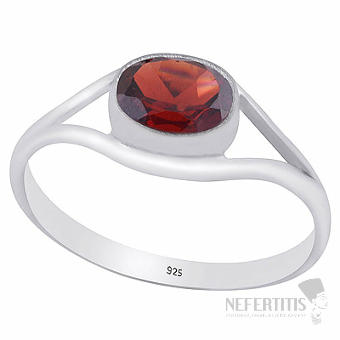 Das markanteste Merkmal des Rings ist ein etwa 5 × 7 mm großer Stein in klassischer Ovalform . Der Granat ist facettiert (brillant geschliffen) , wodurch er das Licht wunderschön reflektiert und ein intensives Funkeln erzeugt.