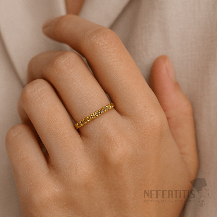 Dieser außergewöhnliche MDS2- Ring zelebriert den tschechischen Edelstein Moldavit in einem eleganten und modernen Schmuckdesign. Der Ring ist aus echtem 925er Sterlingsilber gefertigt und anschließend mit 14-karätigem Gold plattiert , was ihm einen warmen Farbton und ein luxuriöses Aussehen verleiht.
