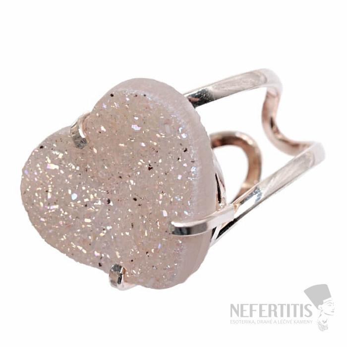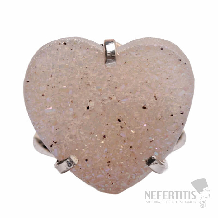 Entdecken Sie die Magie der Eleganz mit diesem versilberten Ring, dessen dominierendes Element eine herzförmige Achat-Druse mit Aqua-Aura-Effekt ist, der durch das Auftragen einer dünnen Metallschicht entsteht. Die Druse schimmert wunderschön. Jeder Stein ist ein Unikat. Achat ist ein Stein des Schutzes, der Kraft und der Harmonie und unterstreicht Ihre Persönlichkeit perfekt. Material: Naturstein, versilbertes Messing. Sie kaufen den abgebildeten Ring.