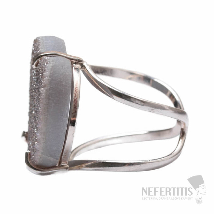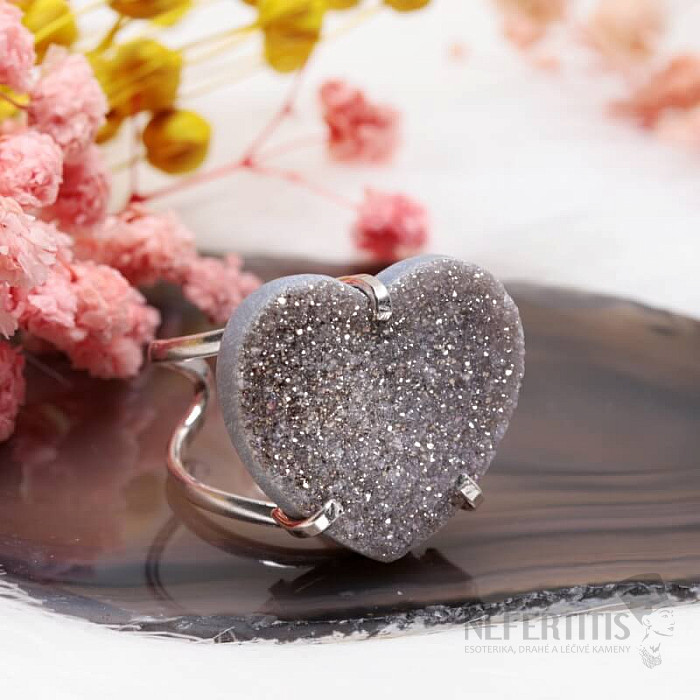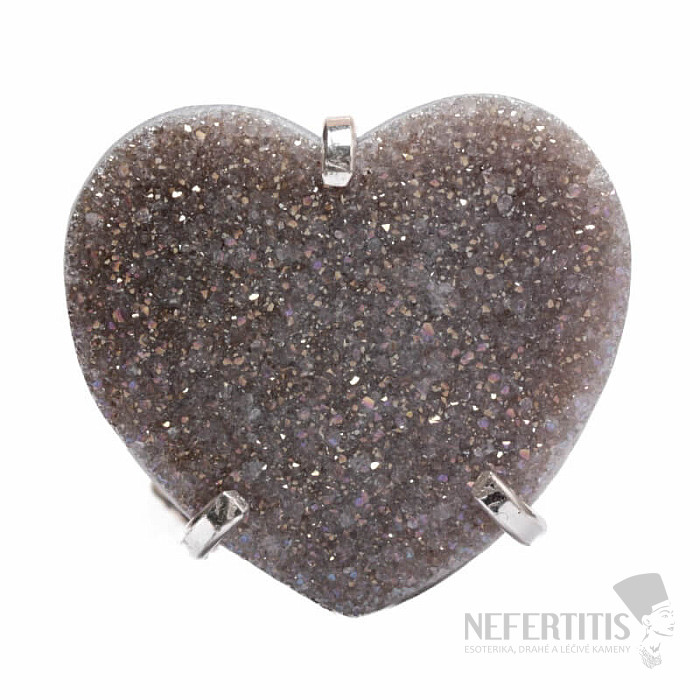 Entdecken Sie die Magie der Eleganz mit diesem versilberten Ring, dessen dominierendes Element eine herzförmige Achat-Druse mit Aqua-Aura-Effekt ist, der durch das Auftragen einer dünnen Metallschicht entsteht. Die Druse schimmert wunderschön. Jeder Stein ist ein Unikat. Achat ist ein Stein des Schutzes, der Kraft und der Harmonie und unterstreicht Ihre Persönlichkeit perfekt. Material: Naturstein, versilbertes Messing. Sie kaufen den abgebildeten Ring.
