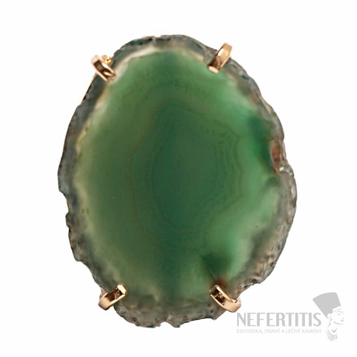 Entdecken Sie den Charme der Eleganz mit diesem vergoldeten Ring, der von einer großen Achatscheibe dominiert wird. Jeder Stein ist ein Unikat. Achat ist ein Stein des Schutzes, der Kraft und der Harmonie und unterstreicht Ihre Persönlichkeit perfekt. Material: Naturstein, vergoldetes Messing. Sie kaufen den abgebildeten Ring.
