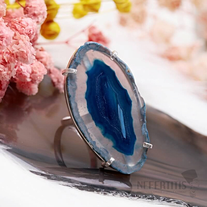 Der Achat in diesem Ring ist gefärbt, um seine Struktur hervorzuheben.