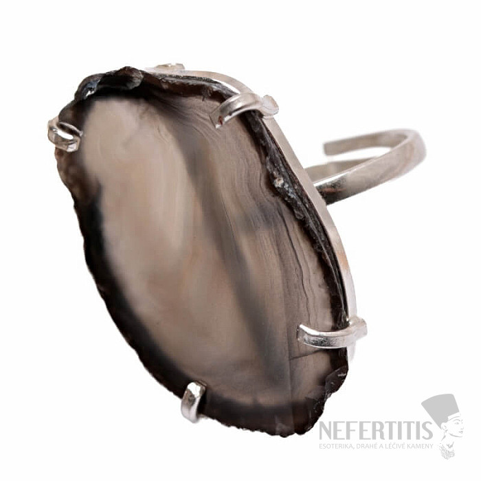 Entdecken Sie den Charme der Eleganz mit diesem versilberten Ring, der von einer großen Achatscheibe dominiert wird. Jeder Stein ist ein Unikat. Achat ist ein Stein des Schutzes, der Kraft und der Harmonie und unterstreicht Ihre Persönlichkeit perfekt. Material: Naturstein, versilbertes Messing. Sie kaufen den abgebildeten Ring.