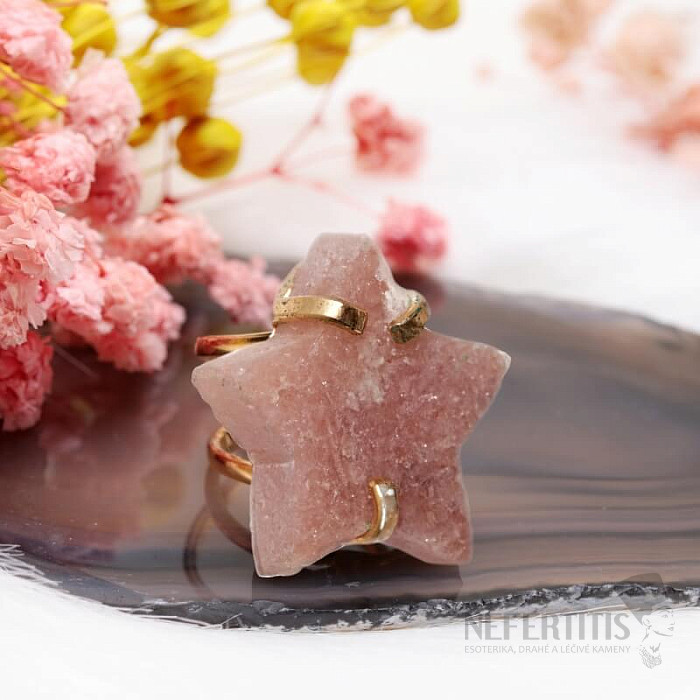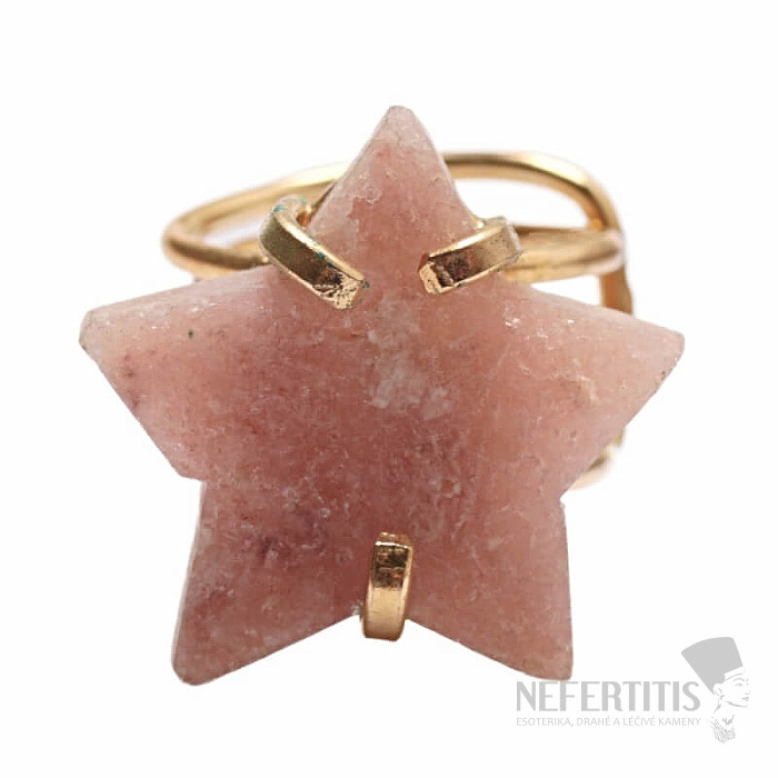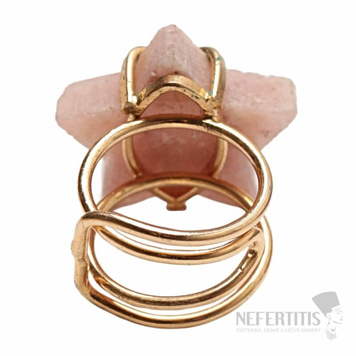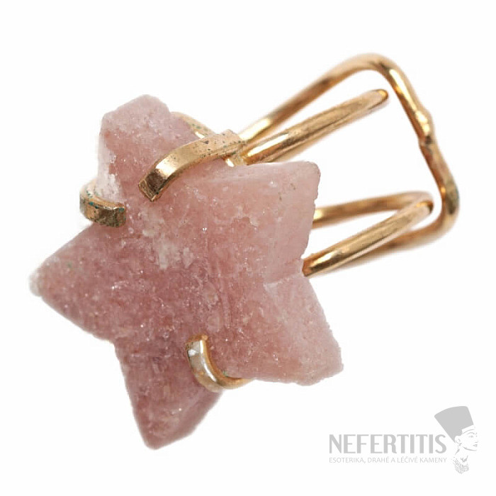 Entdecken Sie den Charme sanfter Eleganz mit diesem vergoldeten Ring, dessen dominierendes Element ein Stern aus rosa Amethyst ist. Dieses Mineral wurde erst vor relativ kurzer Zeit in Patagonien, Argentinien, entdeckt. Sein Abbau ist begrenzt, was ihn noch seltener macht. Jeder Stein ist ein Unikat. Der Ring ist eine Hommage an weibliche Schönheit und Individualität. Amethyst ist ein Stein der Leidenschaft, Liebe und des Verständnisses. Material: Naturstein, vergoldetes Messing. Sie kaufen den abgebildeten Ring.