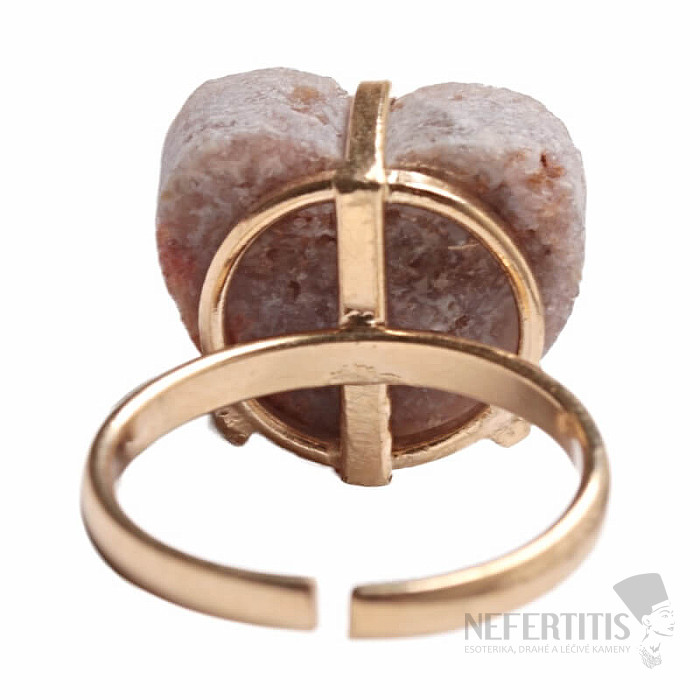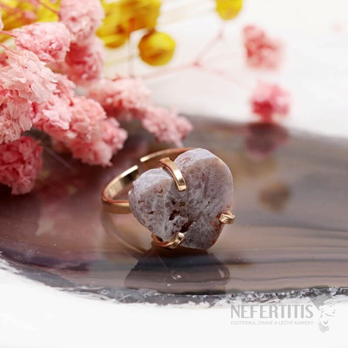 Entdecken Sie den Charme sanfter Eleganz mit diesem vergoldeten Ring, der von einem Herz aus rosa Amethyst dominiert wird. Dieses Mineral wurde erst vor relativ kurzer Zeit in Patagonien, Argentinien, entdeckt. Sein Abbau ist begrenzt, was ihn noch seltener macht. Jeder Stein ist ein Unikat. Der Ring ist eine Hommage an weibliche Schönheit und Individualität. Amethyst ist ein Stein der Leidenschaft, Liebe und des Verständnisses. Material: Naturstein, vergoldetes Messing. Sie kaufen den abgebildeten Ring.