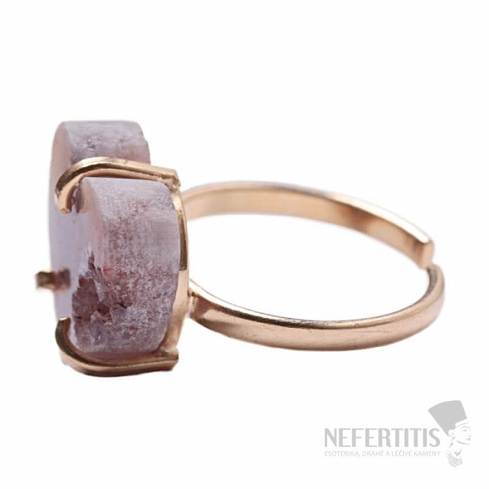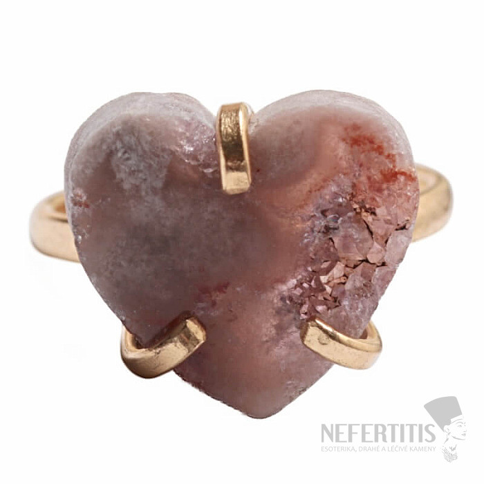 Entdecken Sie den Charme sanfter Eleganz mit diesem vergoldeten Ring, der von einem Herz aus rosa Amethyst dominiert wird. Dieses Mineral wurde erst vor relativ kurzer Zeit in Patagonien, Argentinien, entdeckt. Sein Abbau ist begrenzt, was ihn noch seltener macht. Jeder Stein ist ein Unikat. Der Ring ist eine Hommage an weibliche Schönheit und Individualität. Amethyst ist ein Stein der Leidenschaft, Liebe und des Verständnisses. Material: Naturstein, vergoldetes Messing. Sie kaufen den abgebildeten Ring.