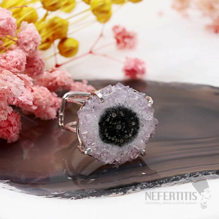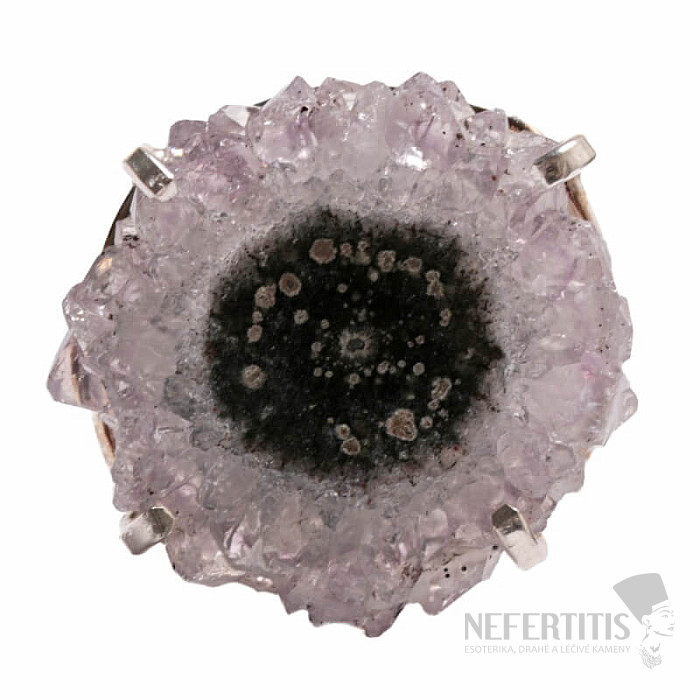 Entdecken Sie den Charme der Eleganz mit diesem versilberten Ring, dessen dominierendes Merkmal der Stalaktitschliff des Amethysts ist. Jeder Stein ist ein Unikat. Amethyst ist ein Stein der Liebe, Leidenschaft und des Verständnisses. Material: Naturstein, versilbertes Messing. Sie kaufen den abgebildeten Ring.