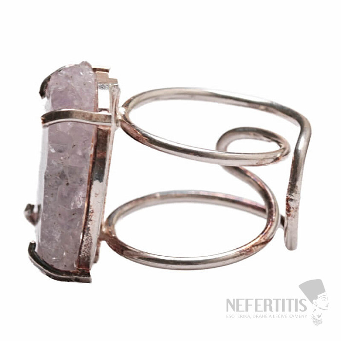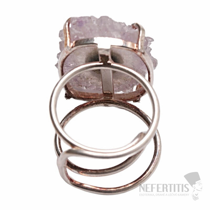 Entdecken Sie den Charme der Eleganz mit diesem versilberten Ring, dessen dominierendes Merkmal der Stalaktitschliff des Amethysts ist. Jeder Stein ist ein Unikat. Amethyst ist ein Stein der Liebe, Leidenschaft und des Verständnisses. Material: Naturstein, versilbertes Messing. Sie kaufen den abgebildeten Ring.