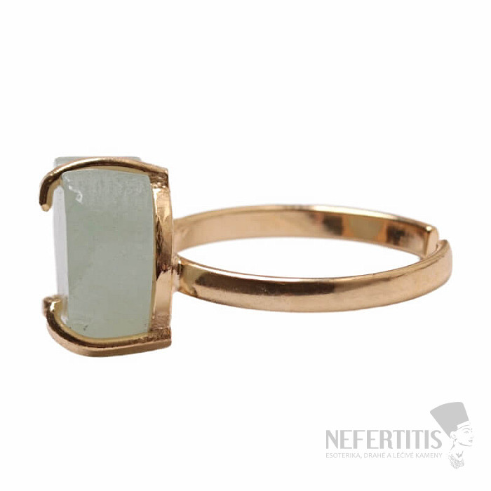 Entdecken Sie den Charme der Eleganz mit diesem vergoldeten Aquamarinring . Aquamarin ist der Stein der Tiefsee und des klaren Himmels. Jeder Stein ist ein Unikat. Aquamarin gilt als Stein des Mutes, des Friedens und der wahren Kommunikation. Er beruhigt den Geist, hilft, Ängste abzubauen und unterstützt den Ausdruck innerer Gefühle mit Güte und Zuversicht. Er ist ein beliebter Talisman für alle, die Harmonie zwischen Herz und Stimme suchen. Material: Naturstein, vergoldetes Messing. Sie erwerben das abgebildete Schmuckstück.