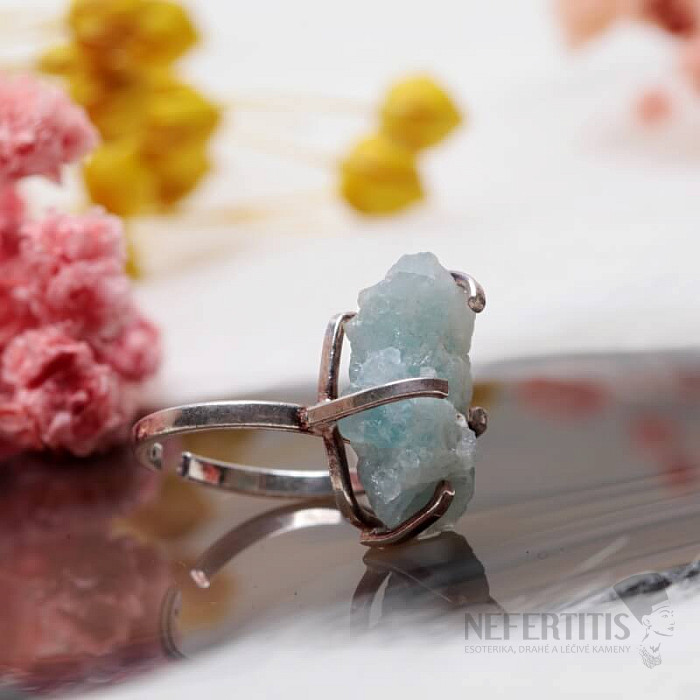 Entdecken Sie den Charme der Eleganz mit diesem versilberten Aquamarinring . Aquamarin ist ein Stein der Tiefsee und des klaren Himmels . Jeder Stein ist ein Unikat. Aquamarin gilt als Stein des Mutes, des Friedens und der wahren Kommunikation. Er beruhigt den Geist, hilft, Ängste abzubauen und unterstützt den Ausdruck innerer Gefühle mit Güte und Zuversicht. Er ist ein beliebter Talisman für alle, die Harmonie zwischen Herz und Stimme suchen. Material: Naturstein, versilbertes Messing. Sie erwerben das abgebildete Schmuckstück.