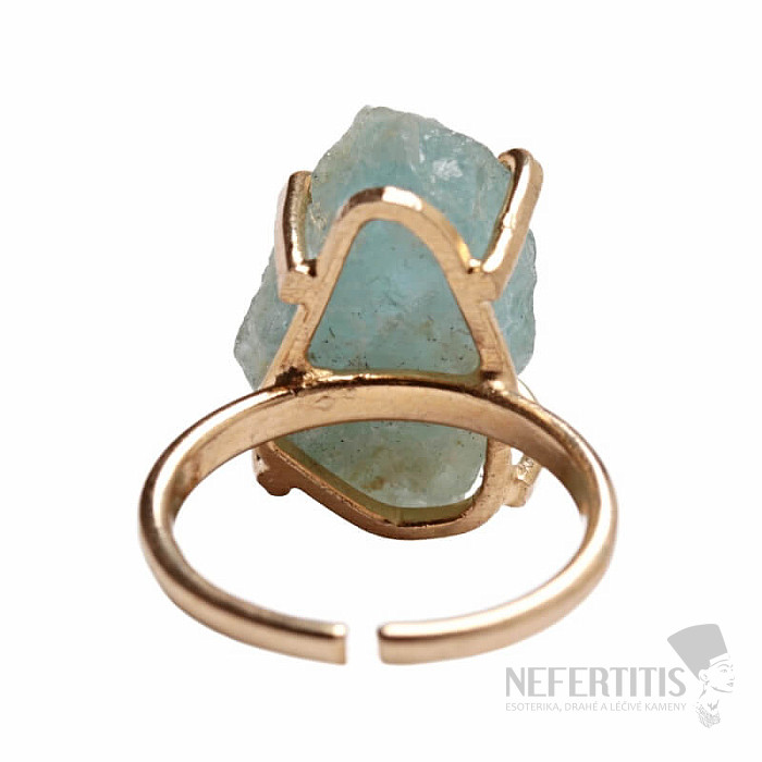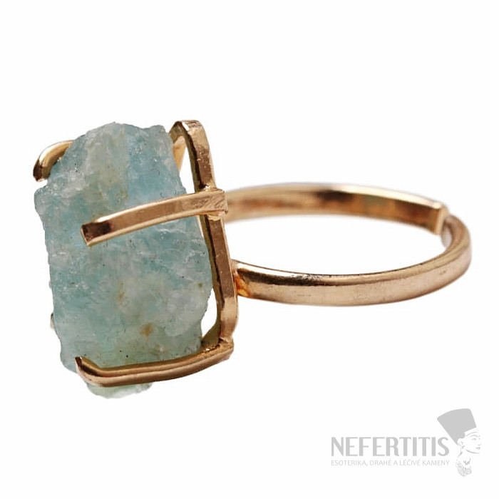 Entdecken Sie den Charme der Eleganz mit diesem vergoldeten Aquamarinring . Aquamarin ist der Stein der Tiefsee und des klaren Himmels. Jeder Stein ist ein Unikat. Aquamarin gilt als Stein des Mutes, des Friedens und der wahren Kommunikation. Er beruhigt den Geist, hilft, Ängste abzubauen und unterstützt den Ausdruck innerer Gefühle mit Güte und Zuversicht. Er ist ein beliebter Talisman für alle, die Harmonie zwischen Herz und Stimme suchen. Material: Naturstein, vergoldetes Messing. Sie erwerben das abgebildete Schmuckstück.