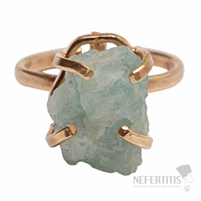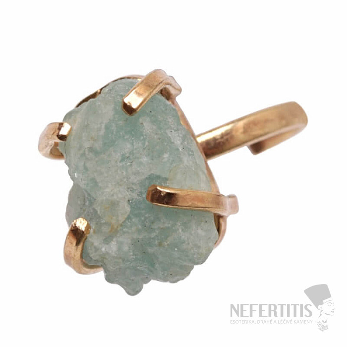 Entdecken Sie den Charme der Eleganz mit diesem vergoldeten Aquamarinring . Aquamarin ist der Stein der Tiefsee und des klaren Himmels. Jeder Stein ist ein Unikat. Aquamarin gilt als Stein des Mutes, des Friedens und der wahren Kommunikation. Er beruhigt den Geist, hilft, Ängste abzubauen und unterstützt den Ausdruck innerer Gefühle mit Güte und Zuversicht. Er ist ein beliebter Talisman für alle, die Harmonie zwischen Herz und Stimme suchen. Material: Naturstein, vergoldetes Messing. Sie erwerben das abgebildete Schmuckstück.