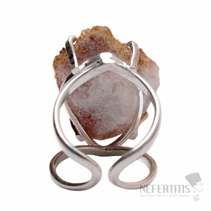 Entdecken Sie die Magie funkelnder Eleganz mit diesem versilberten Ring. Dominiert wird er von einer markanten Citrin-Druse aus winzigen Kristallen , die an goldenen Sand oder Sonnenstrahlen erinnern. Jeder Stein ist ein Unikat. Citrin ist ein Stein der Fülle, Freude und persönlichen Stärke. Material: Naturstein, versilbertes Messing. Sie erwerben den abgebildeten Ring.