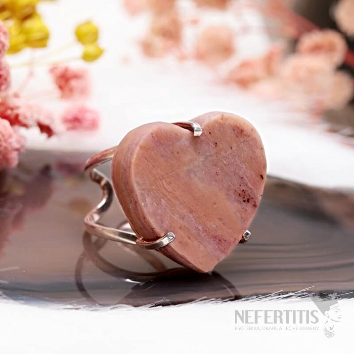 Entdecken Sie den Charme sanfter Eleganz mit diesem versilberten Ring, der von einem großen Erdbeerkristall in Herzform dominiert wird. Jeder Stein ist ein Unikat. Er zeichnet sich durch zarte Rosatöne und natürliche Einschlüsse aus. Das Herz symbolisiert Liebe, Freude und Glück und der Kristall fördert Selbstliebe, Sanftmut, Harmonie und inneren Frieden. Material: Naturstein, versilbertes Messing. Sie erwerben den abgebildeten Ring.