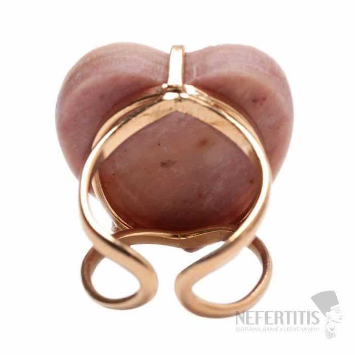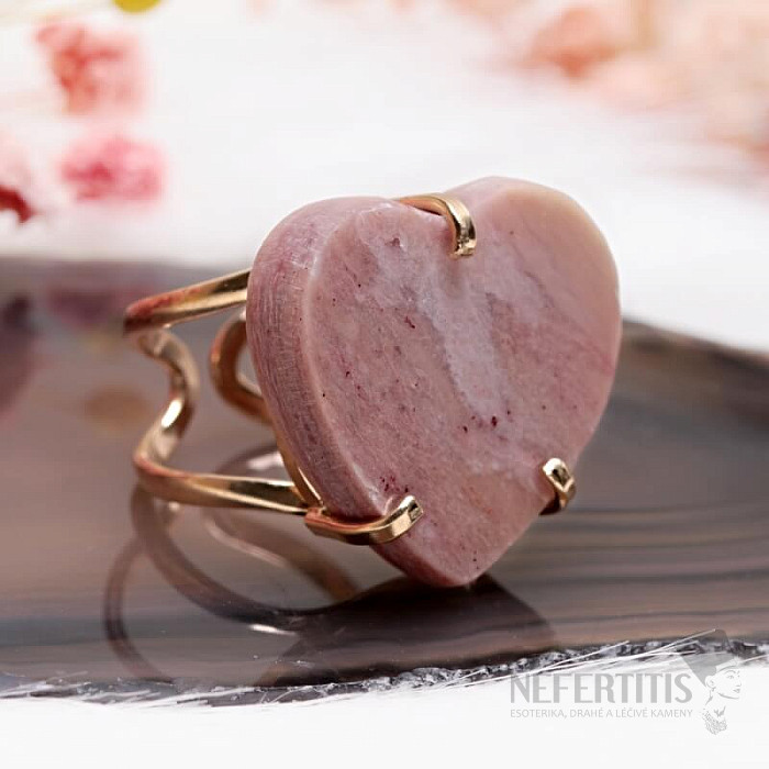 Entdecken Sie den Charme sanfter Eleganz mit diesem vergoldeten Ring, der von einem großen Erdbeerkristall in Herzform dominiert wird. Jeder Stein ist ein Unikat. Er zeichnet sich durch zarte Rosatöne und natürliche Einschlüsse aus. Das Herz symbolisiert Liebe, Freude und Glück, und der Kristall fördert Selbstliebe, Sanftmut, Harmonie und inneren Frieden. Material: Naturstein, vergoldetes Messing. Sie erwerben den abgebildeten Ring.