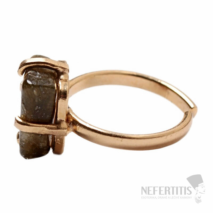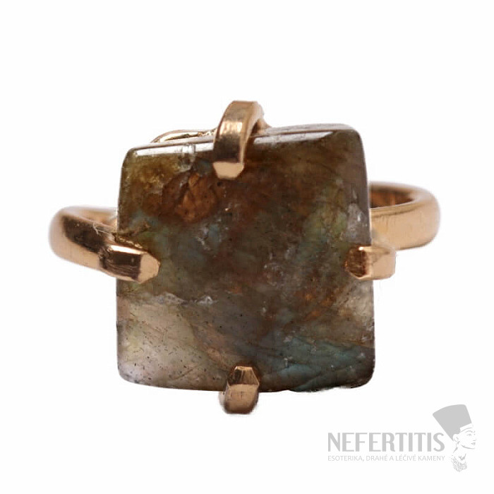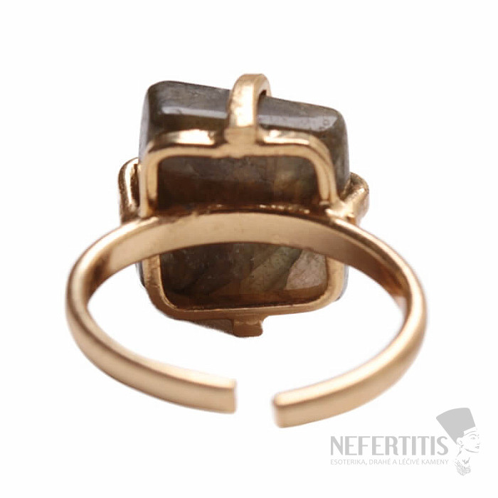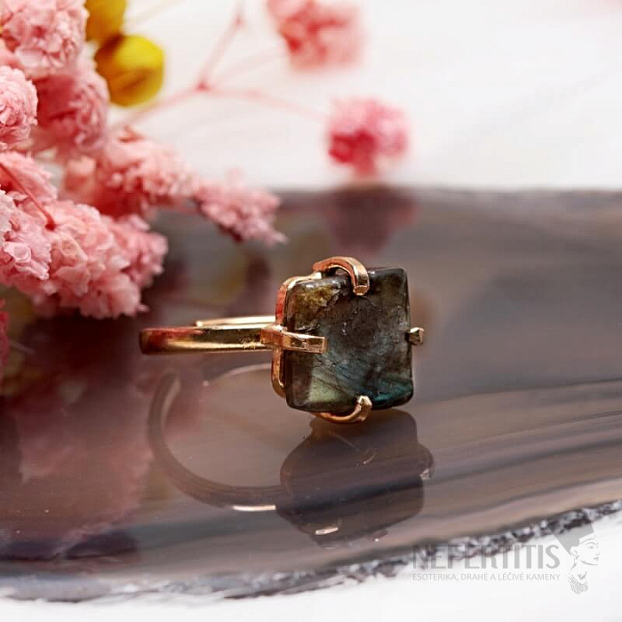 Entdecken Sie die Magie der Eleganz mit diesem vergoldeten Labradoritring mit einem geheimnisvollen Spiel aus blauen und goldenen Reflexen. Jeder Stein ist ein Unikat, das je nach Lichteinfall glänzt. Labradorit ist ein Stein der Intuition, des Schutzes und der Transformation. Material: Naturstein, vergoldetes Messing. Sie erwerben den abgebildeten Ring.