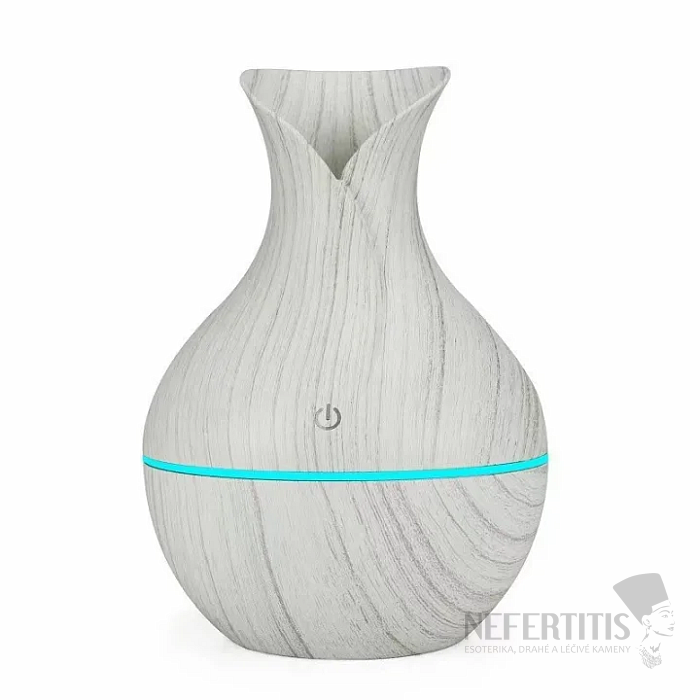 Der Diffusor in Form einer Vase mit weißem Holzdekor wirkt elegant und zeitlos. Er passt in moderne und natürlich gestaltete Innenräume. Die LED-Hintergrundbeleuchtung mit sanftem Farbübergang schafft Ruhe und Entspannung – eine ideale Ergänzung für Schlafzimmer, Bad oder Arbeitszimmer.