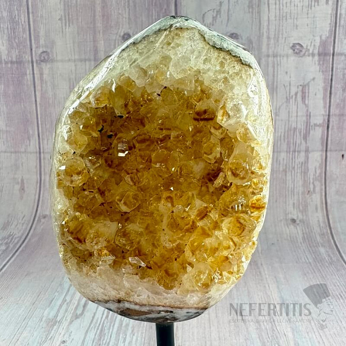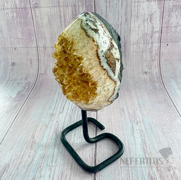Polierte Citrin-Druse (gebrannter Amethyst) auf einem Metallständer, A-Qualität. Auf diese Weise bearbeitete Steine sind sehr selten. Sie kaufen genau das abgebildete Stück. Herkunftsland: Uruguay Citrin ist ein… Mehr lesen »
