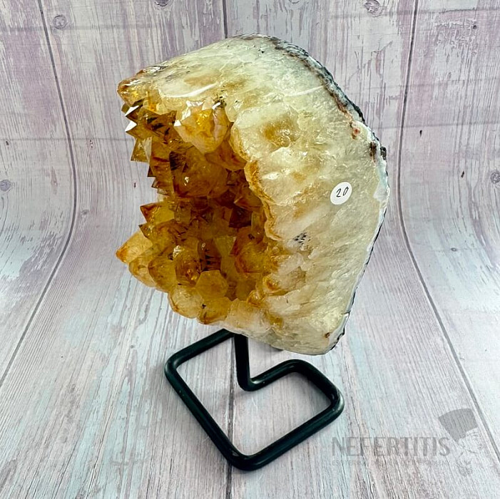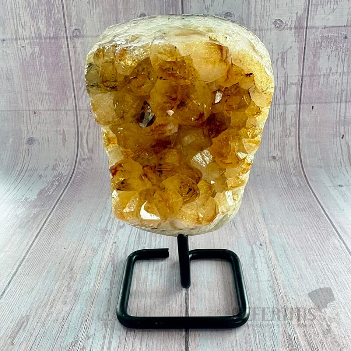 Polierte Citrin-Druse (gebrannter Amethyst) auf einem Metallständer, A-Qualität. Auf diese Weise bearbeitete Steine sind sehr selten. Sie kaufen genau das abgebildete Stück. Herkunftsland: Uruguay Citrin ist ein… Mehr lesen »
