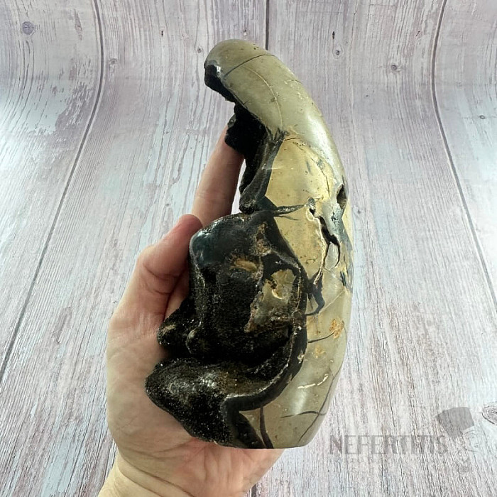 Septaria – Drachenei. Attraktive Dekoration für Wohnung oder Büro. Das Ei steht auf einer polierten Oberfläche.